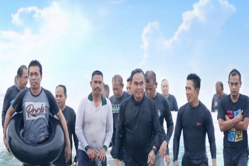 TANAH BUMBU, borneoreview.co – Bupati Tanah Bumbu, Kalimantan Selatan, Zairullah Azhar beserta jajaran Pemkab setempat berenang di Pantai Pagatan guna menarik minat wisatawan agar berkunjung ke destinasi wisata unggulan itu.