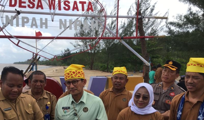 Menteri Parekraf Sandiaga Salahuddin Uno (kedua kiri) saat mengunjungi Pantai Nipah-Nipah Kabupaten Penajam Paser Utara, Provinsi Kalimantan Timur yang masuk ADWI 2024, Senin (12/8/2024) (ANTARA/Nyaman Bagus Purwaniawan)