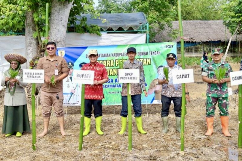 Pemkab HST melaksanakan percepatan musim tanam padi di areal rawan banjir di Desa Aluan Besar, Kecamatan Batu Benawa, Hulu Sungai Tengah, Kalimantan Selatan. (ANTARA/HO-Distan HST)