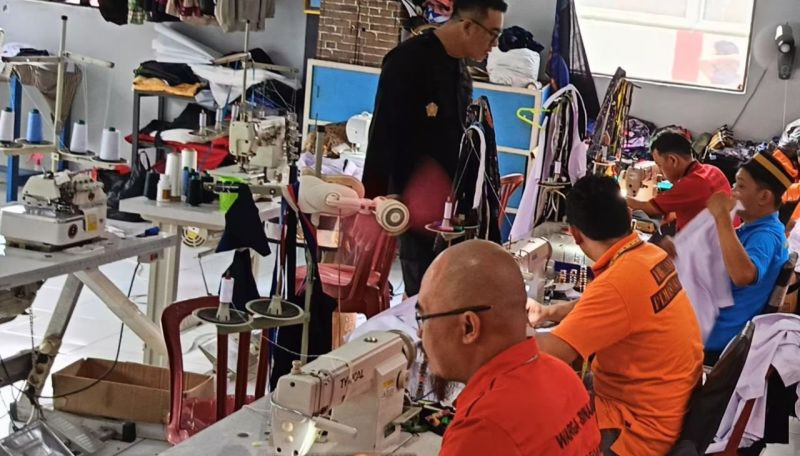 Sejumlah narapidana di Lapas Narkotika Samarinda yang aktif menjalani pembinaan keterampilan menjahit. (ANTARA/Ahmad Rifandi)