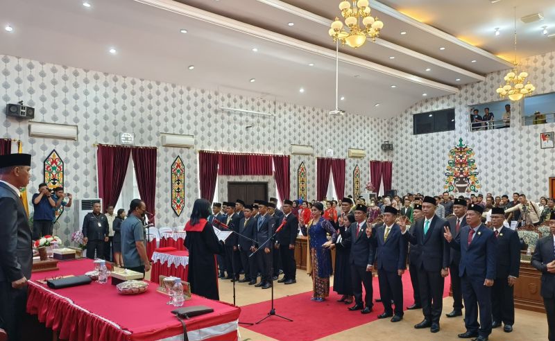 Pelantikan 25 orang anggota DPRD Kabupaten Katingan masa jabatan 2024–2029 di ruang Rapat Paripurna DPRD Katingan, Kasongan, Rabu (14/8/2024). (ANTARA/Naslee)