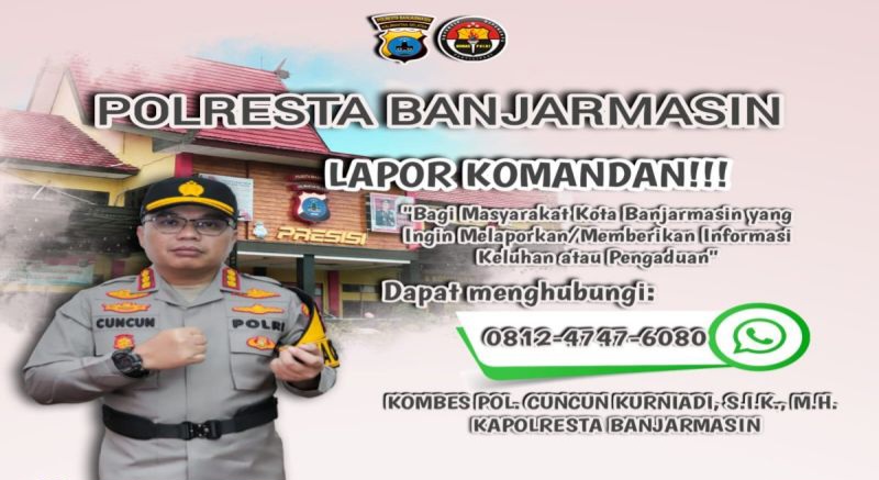 BANJARMASIN, boneoreview.co – Kapolresta Banjarmasin Kombes Pol. Cuncun Kurniadi menyiapkan nomor telepon pengaduan khusus bagi masyarakat yang ingin melapor ataupun memberikan informasi melalui inovasi “Lapor Komandan”.