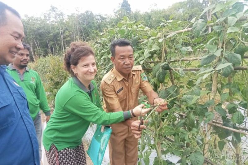 Kepala Desa Tumbang Mangkutup, Suriato, bersama UPT KPHL Kapuas Kahayan, melakukan panen kacang panjang di kawasan hutan desa, Senin (30/9/2024). (ANTARA/HO-Pemdes Tumbang Mangkutup) (Kapuas)
