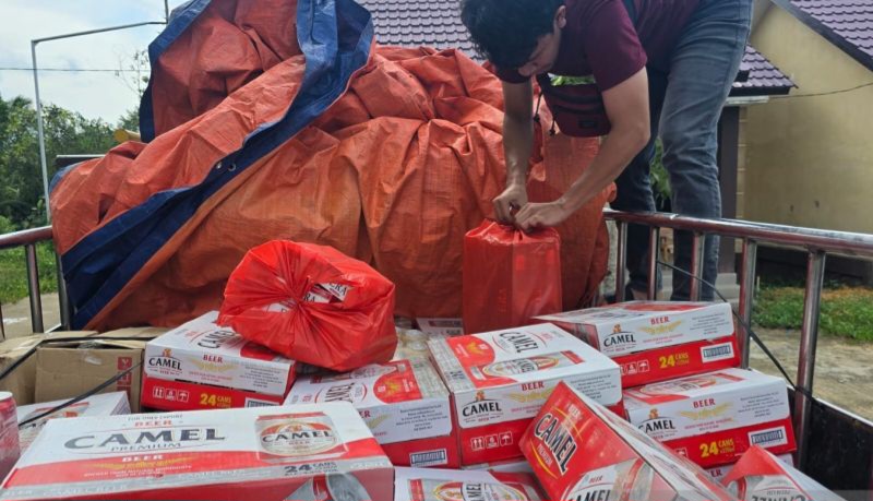 Barang bukti yang diamankan antara lain satu unit mobil pikap warna putih, 10 dus Heineken, 30 dus Camel Premium, beberapa krat minuman kemasan, 45 karung beras dengan berbagai merek, dan beberapa kotak makanan impor, serta produk konsumsi lain.